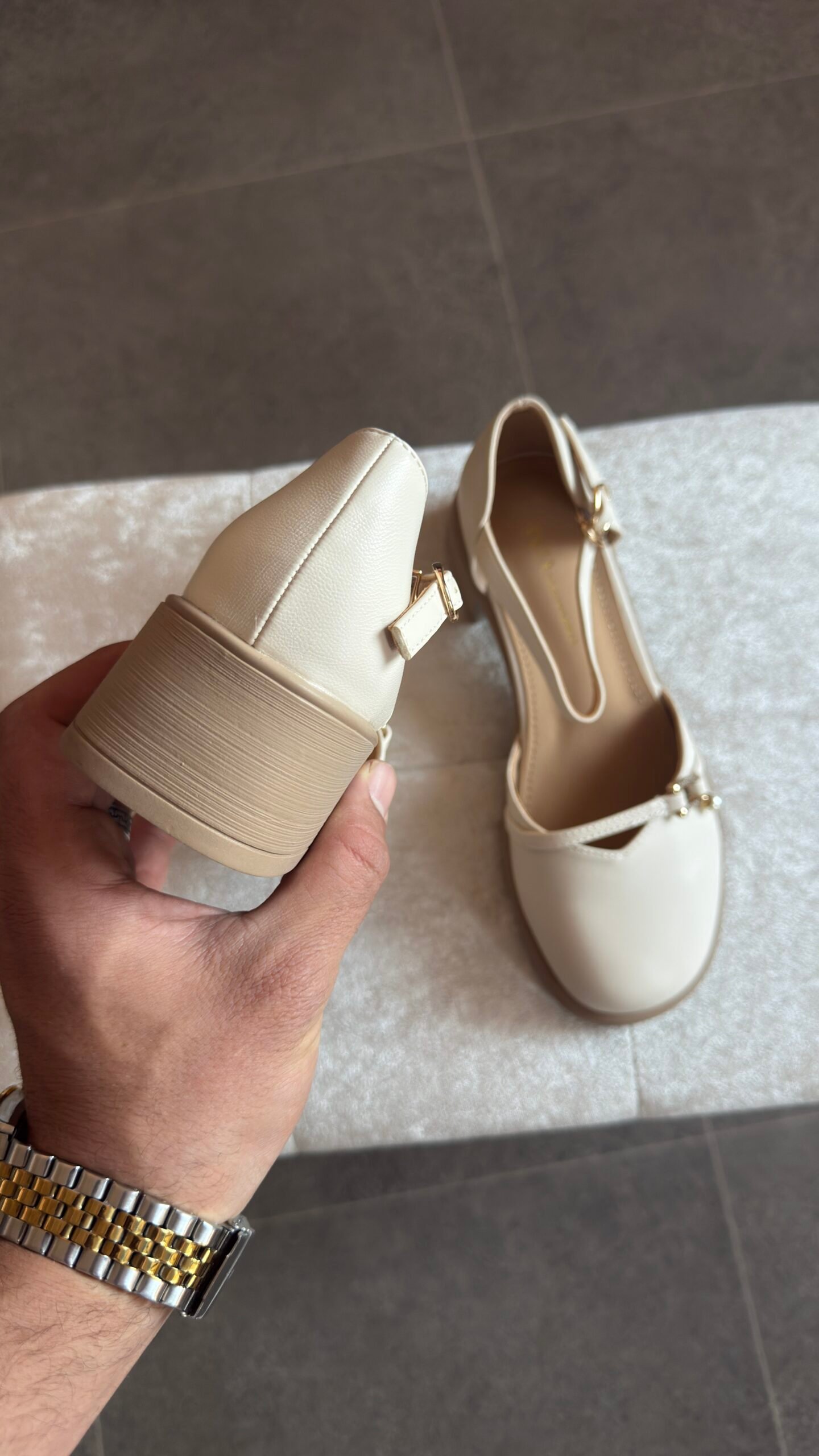 Escarpins Mary Jane Beige à Talon Bloc – Élégance & Confort